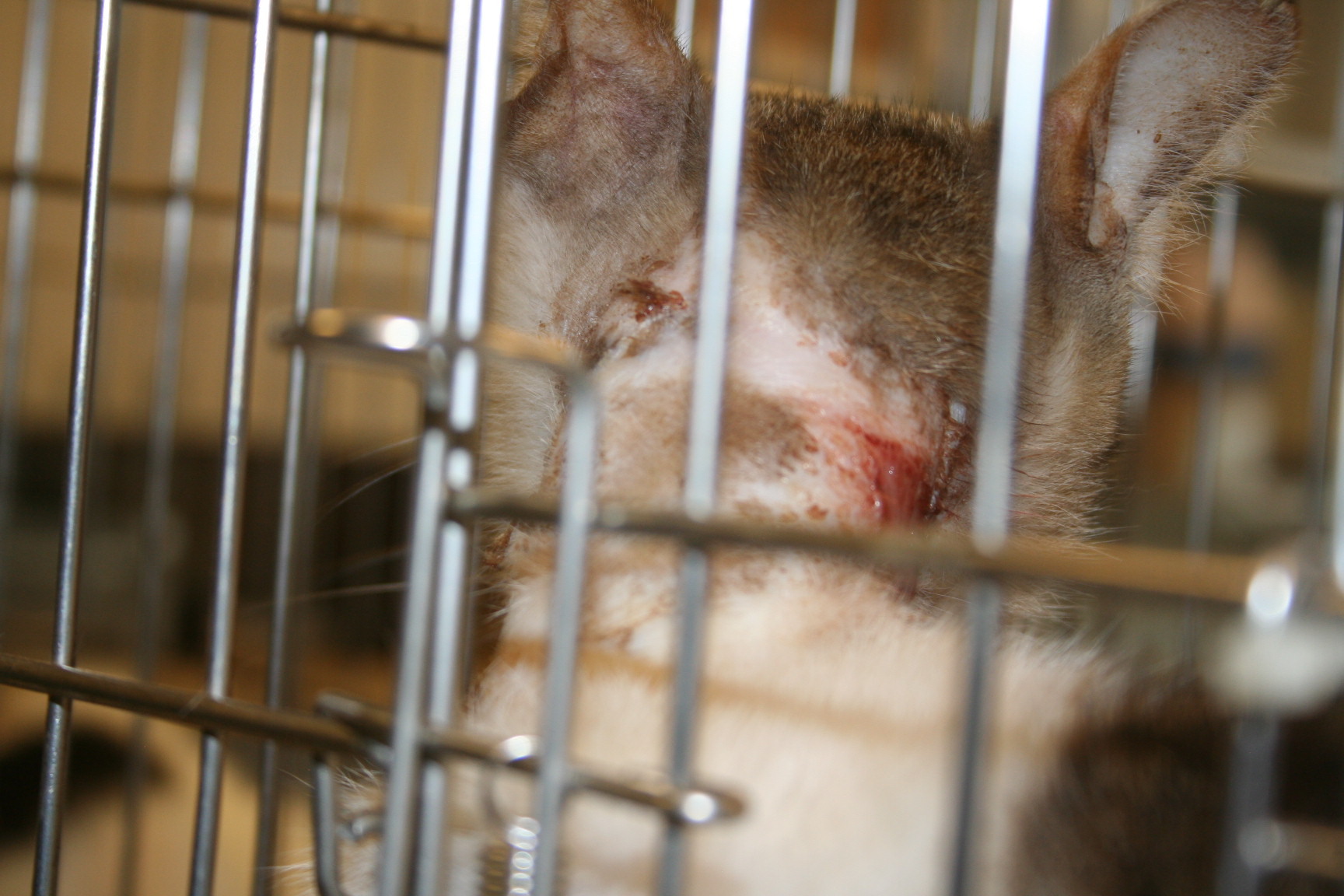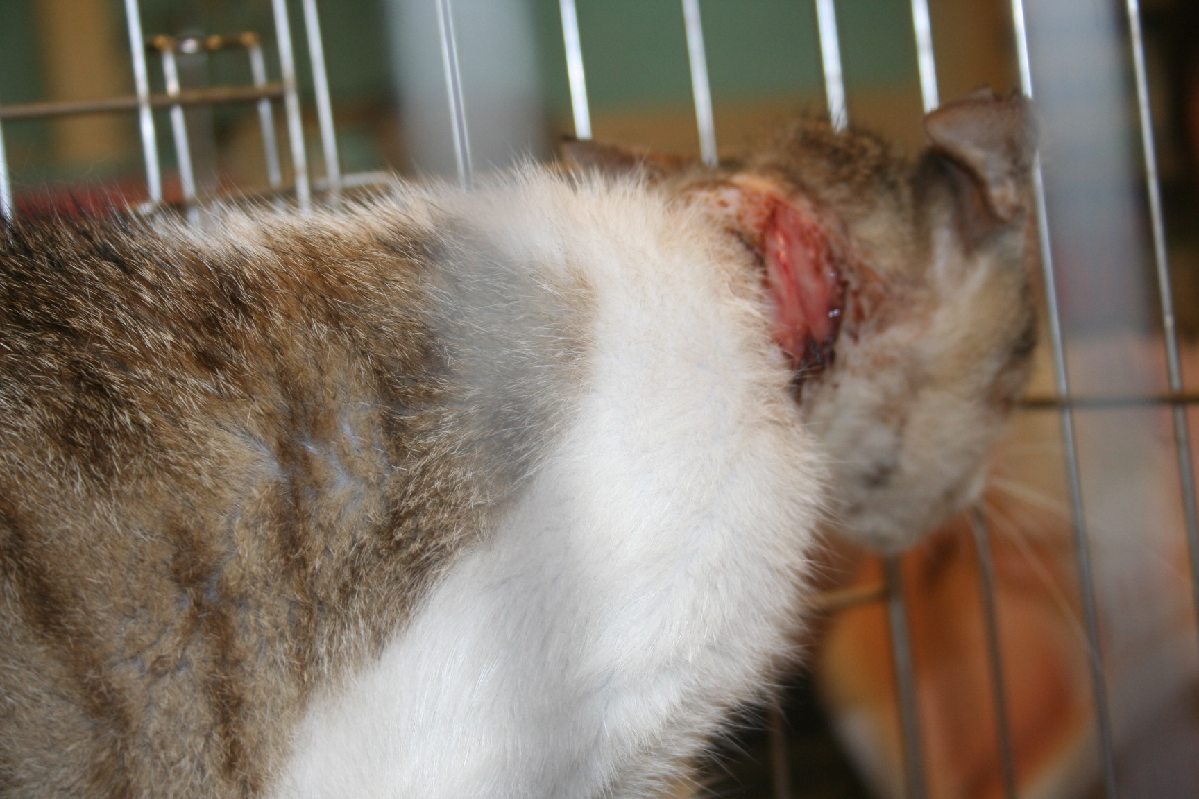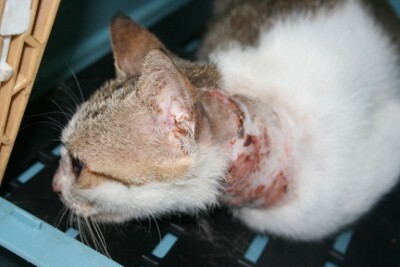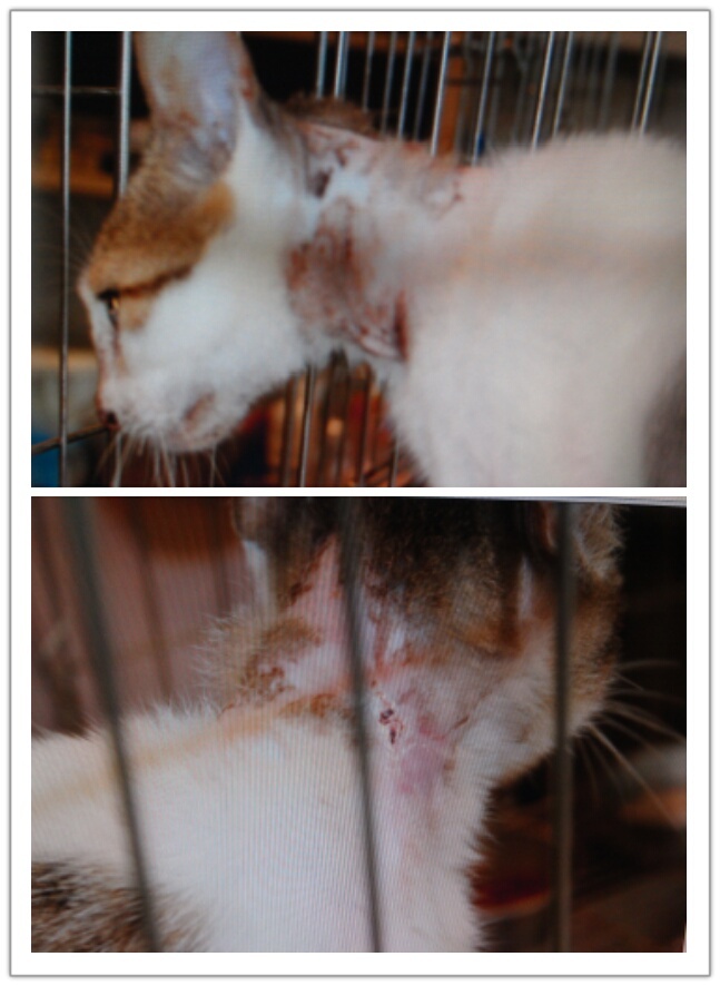 主題: 大同路脖子嚴重潰爛的貓咪 申請者姓名: 劉素鳳 花色: 申請日期: 2012-07-18 08:39:05 申請者部落格: 申請者臉書網址: 所在縣市/合作醫院: 高雄市/回生動物醫院 治療費用: 9045元 需求人數: 10人 已結案 (2012-12-08 19:00:01) 報名人員: Penny Peng(已付款)、Winni Lin、sally(已付款)、MM(已付款)、MM(已付款)、Carol Wang(已付款)、Iwin Chiang(已付款)、Shu Lin Tsai(已付款)、Jessica C. Chang(已付款)、Iwin Chiang(已付款)、小舟(已付款)、 候補人員: KO.PON、 動物病情說明: 這是在大同路誘捕結紮的母貓, 入院麻醉後發現脖子嚴重的感染潰爛. 從前面看還不知道她傷的那麼重, 因為脖子會一直轉動, 復原需要時間. 經過多次傷口的處理治療終於復原