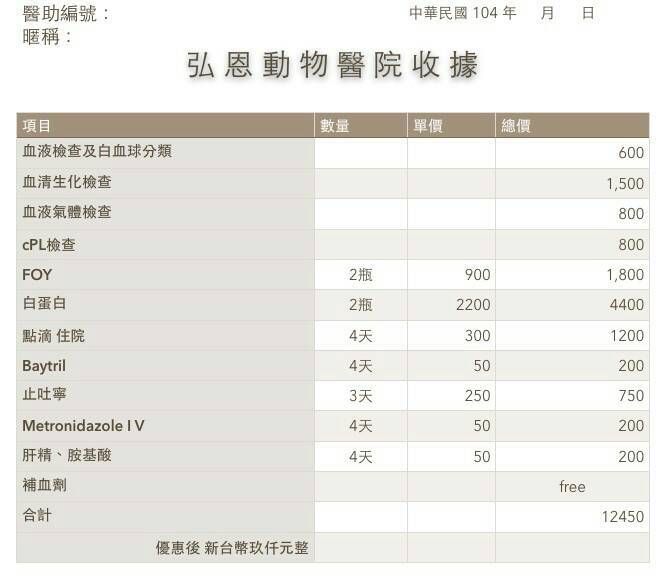 主題: 壽山國小不吃 胰臟炎的貓 申請者姓名: 劉素鳳 花色: 申請日期: 2015-10-03 00:13:51 申請者部落格: 申請者臉書網址: https://m.facebook.com/sufeng.liu?ref=bookmarks 所在縣市/合作醫院: 高雄市/弘恩動物醫院 治療費用: 9000元 需求人數: 10人 已結案 (2022-05-13 15:12:48) 報名人員: 何偉靖(已付款)、Amber Chung(已付款)、咪咪貓(已付款)、齊海倫(已付款)、詹嘉祥(已付款)、Manda Hung(已付款)、Mickey Han(已付款)、林螢逸(已付款)、Pamela Kuo x2(已付款)、 候補人員: 動物病情說明: 壽山國小這邊一直固定有來餵食,這隻貓咪好幾天了,發現他從食慾不好一直沒好轉,反而越來越嚴重,最近南部登格熱的疫情高漲,懷疑有可能是噴藥造成貓咪有口炎還是中毒,所以趕緊把貓送醫院治療,醫生檢查發現貓咪有嚴重的胰臟炎合併肝臟問題,胰臟炎的檢測貓咪胰臟炎非常的嚴重,黃膽脫水,呼吸道感染!吐拉!腎臟萎縮!白蛋白過低!白血球高!貧血!好多的狀況>< 因為不吃,醫生也幫貓咪插了鼻胃管,並給予抗生素白蛋白胰臟炎藥物保肝藥補血藥,住院持續治療到第三天,貓咪狀況越來越不好,紅血球、血溶比過低,有貧血、脫水現象,