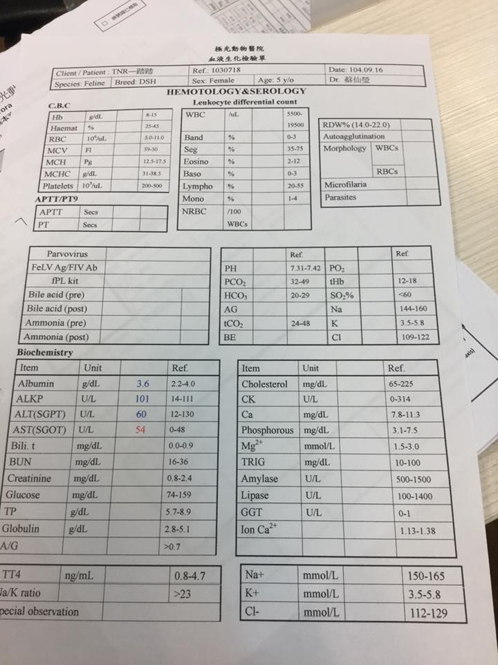 於2015/5/26再次回診拿藥,血檢結果肝指數降,醫生建議踏踏已不需再吃肝藥及肝處方飼料,真替她開心,