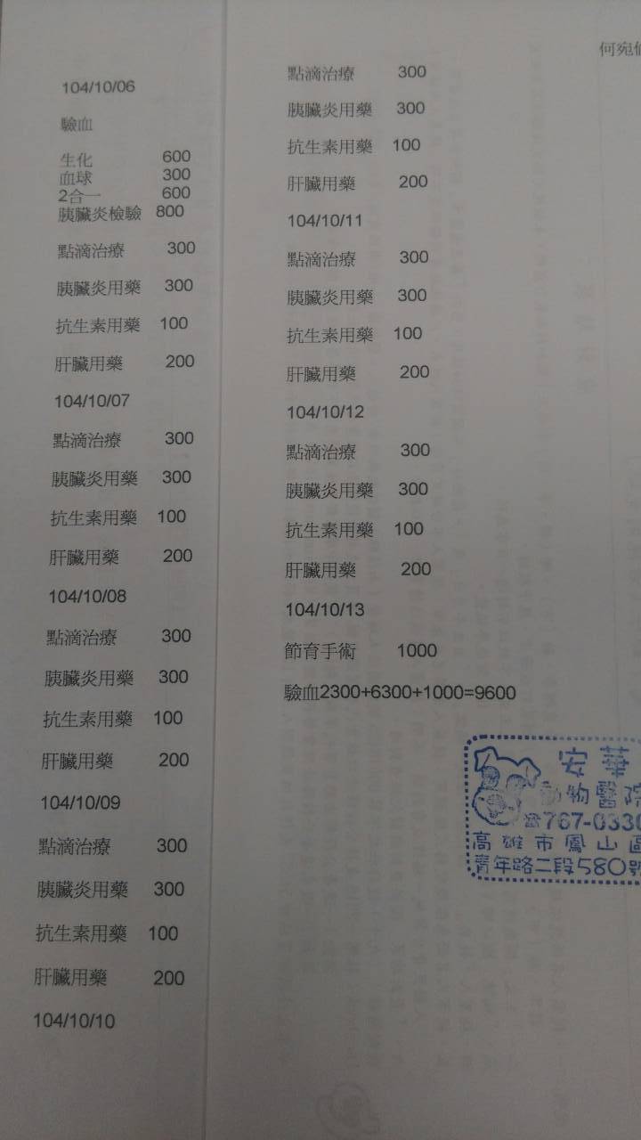 由於愛媽何小姐不擅長使用電腦,才由我代筆.我們已將我們這區的母浪狗、貓咪全部結紮,偶爾會有外來發情的貓、狗也都會結紮,加上意外車禍、被狗咬傷的貓咪都有在處理,長期下來,實在無力負擔,所以希望貴協會給予協助!醫生說口水貓復原情況良好,預計10/16日出院。