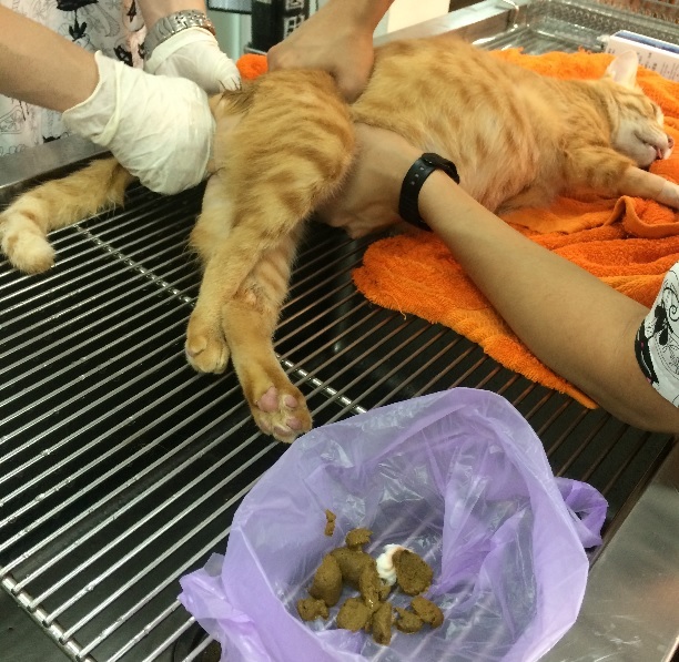 腸道蠕動比較正常後,小黃開始排出少許糞水,