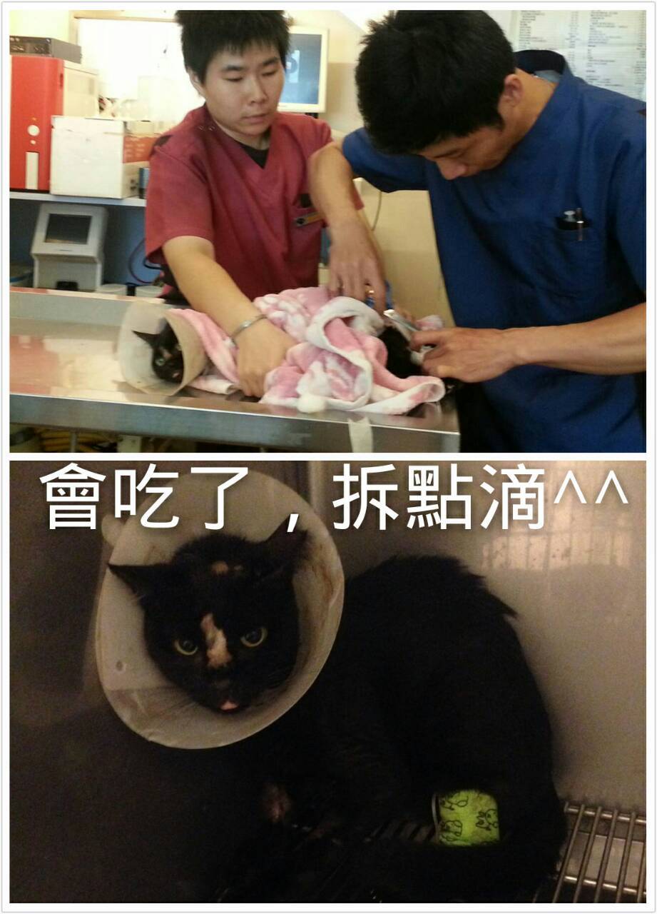 原本在10/15 醫生傳來 敗血性貧血,要輸血,隨後又說 脂肪肝有併發症產生了,不樂觀 >< 沒想要醫生努力的照顧搶救 ,在10/20傳來說貓咪會吃了,陸續在醫院觀察,感謝醫生讓貓多住到10/28才出院,謝謝大家幫助這貓咪獲救^^