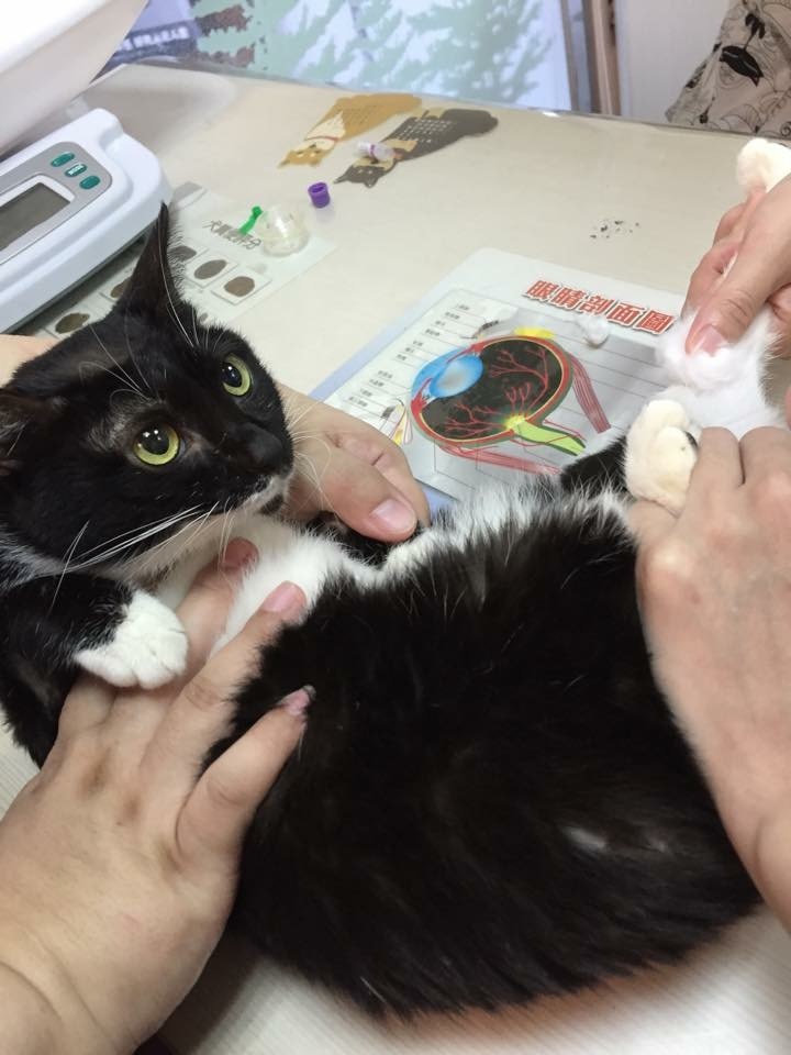 裝置鼻餵管灌食, 並抽血送實驗室做檢驗,