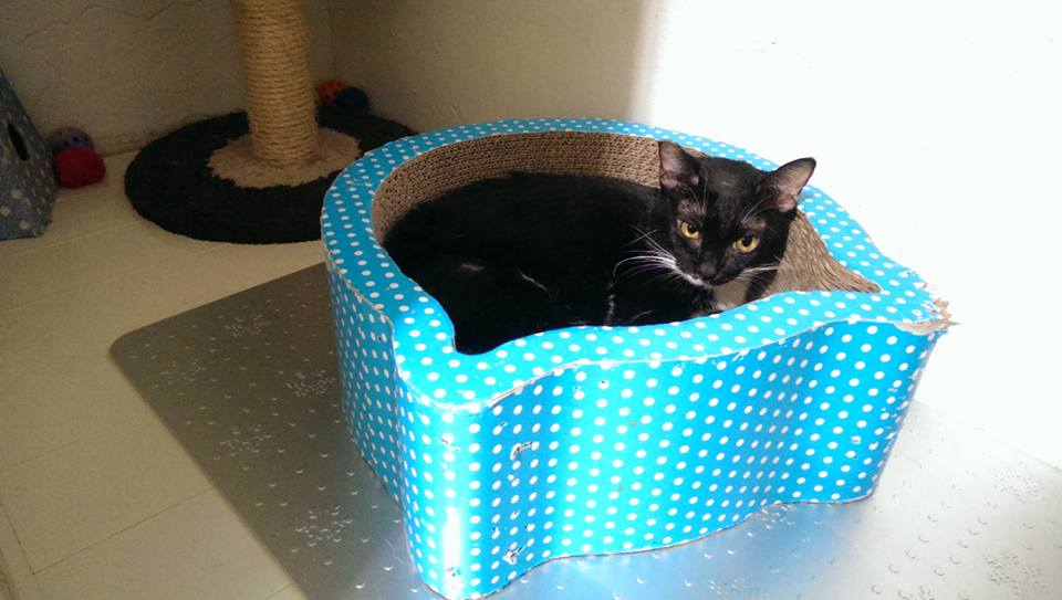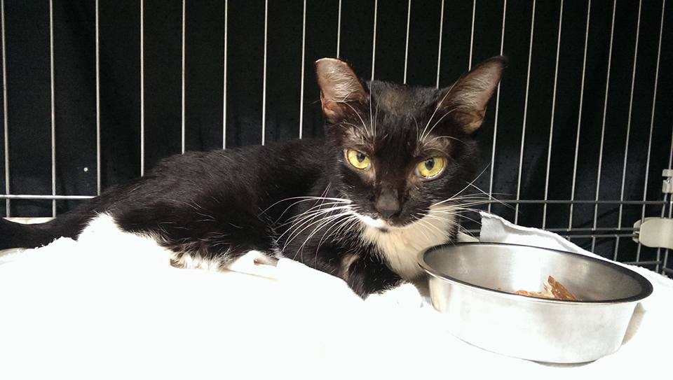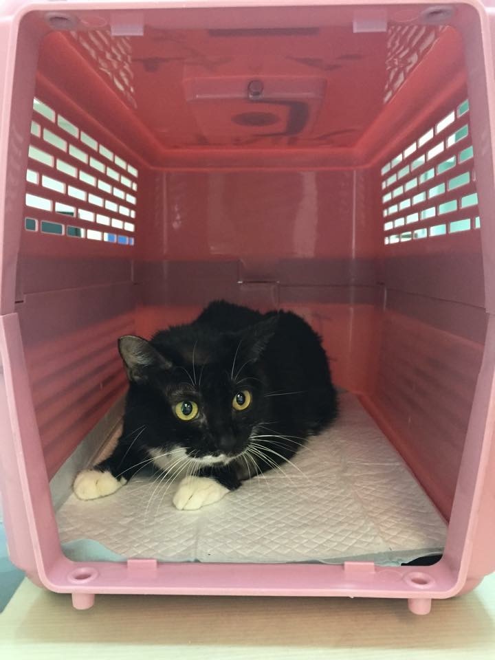 回到熟悉環境的阿滿, 精神放鬆很多, 也願意自己進食少許,動物近況說明: 回協會療養期間, 維持每日注射干擾素, 給予類固醇治療,