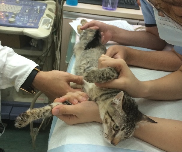 貂蟬尤其嚴重,呼吸得很用力非常倦怠,緊急送往醫院檢查,醫師懷疑可能有心臟方面的疾病,建議轉診道心臟專科"專心動物醫院"進行心臟超音波檢查,