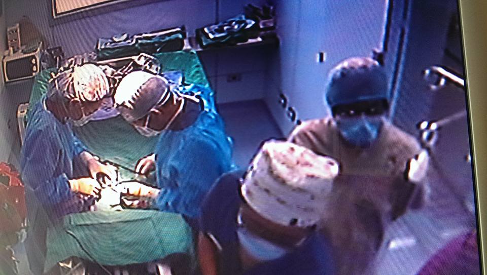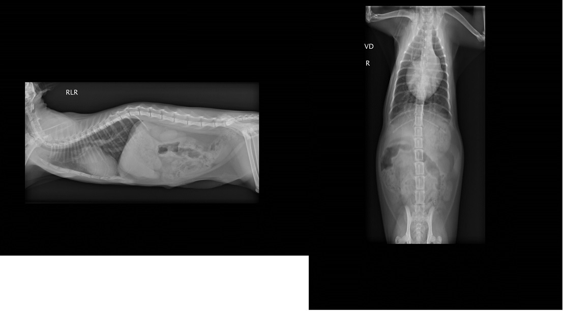x光檢查發現腹腔赫尼亞,胎兒隨著破洞掉到後腳,當天血檢白血球過高,恐怕已經有感染的狀況,