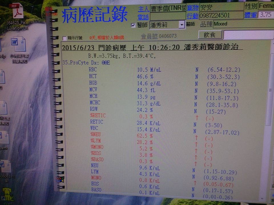 6/23進行了抽血檢驗、照X光、尿檢、糞剪、梨形鞭毛蟲檢查...等
