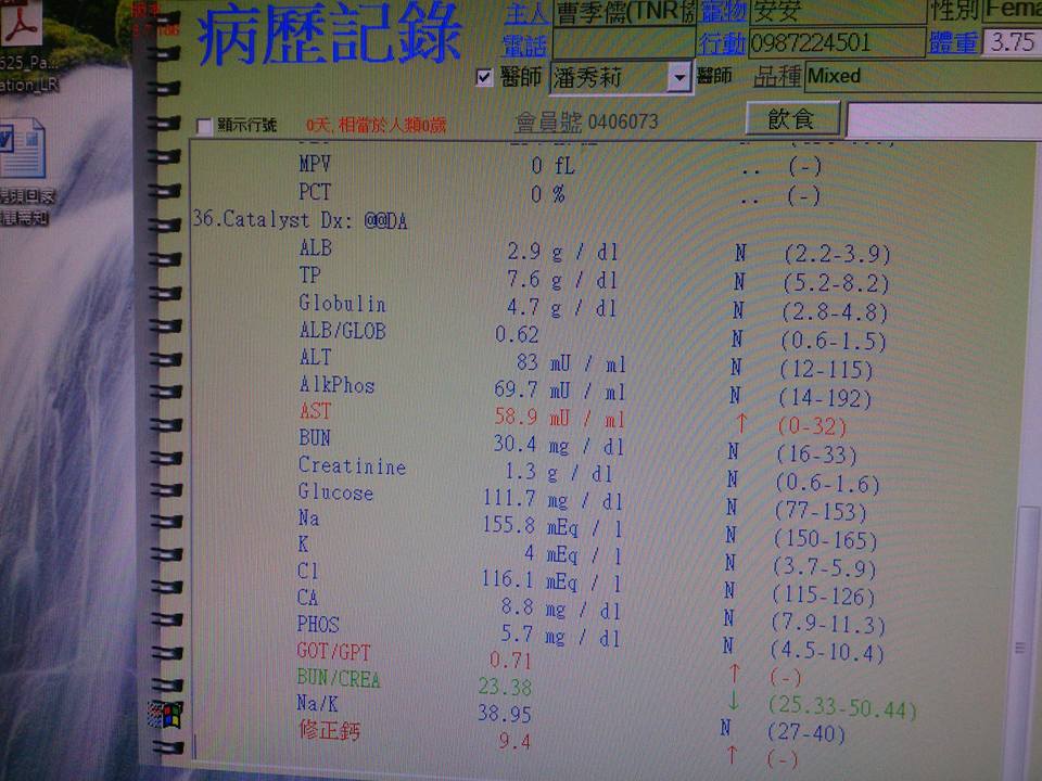 住院已來安安很認命的經歷皮下點滴、靜脈點滴、止吐劑、皮下制酸劑、靜脈抗生素及口服消化酵素,終於有好轉的跡象。