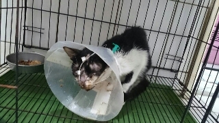 經過一段時間的治療與照顧,貓咪捱過貓瘟病毒的攻擊,目前仍在醫院接受排毒治療。體重明顯增加,可摸可抱,日後出院不考慮野放,將由志工帶回照顧。動物近況說明: 貓咪通過貓瘟考驗,目前仍然住院中,由於貓咪相當親人,可摸可抱,出院後由志工收編,帶回貓屋照顧。