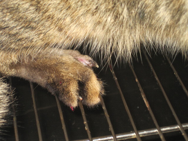 主題: 四隻腳掌上方傷口潰爛 申請者姓名: 蔡葦澄 花色: 申請日期: 2012-03-09 17:55:39 申請者部落格: 申請者臉書網址: 所在縣市/合作醫院: 台北市/詠欣動物醫院 治療費用: 4500元 需求人數: 5人 已結案 (2012-03-14 16:00:00) 報名人員: Pei Ying Liao(已付款)、許惠雯(已付款)、Wei-Ning Su(已付款)、Lo Chun Hung(已付款)、鄭榆璇(已付款)、 候補人員: kelly、Cora Chi、 動物病情說明: (照片是已治療十天時拍的)莊太太、張媽媽以前在仁愛路餵食的街貓,已結紮剪耳被捕捉到收容所,領回後放置醫院觀察,三天都不肯進食,經麻醉檢驗、無愛滋白血、白血球3.2萬,四隻腳糜爛,其中一隻還缺少指頭,可能有免疫上的問題,但治療後傷口也慢慢復原,後續由岳小姐回置
