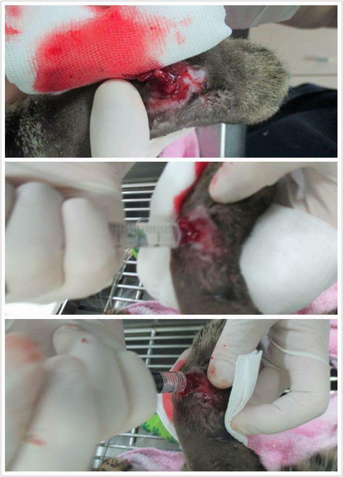 合計 10400元動物近況說明: 11/2送豹豹去醫院,醫生幫豹豹血檢、照X光發現右前手有一個大洞,蜂窩性組織炎,才導致前手沒法著地,醫生醫生幫豹豹清創並上點滴。11/3去醫院看豹豹食慾,精神都ok。,11/9去看豹豹,豹豹點滴已拆除,目前傷口還是包紮中。11/11去看豹豹傷口有慢慢癒合中。11/18醫生告知豹豹傷口已好,走路也正常了,可以出院了。目前豹豹安置在我這,謝謝協會跟大家和醫生,助理的幫忙,謝謝大家~