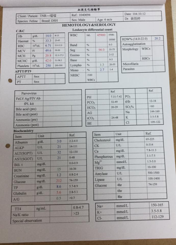 血檢結果,肝腎功能均正常,但白血球又高至23100,