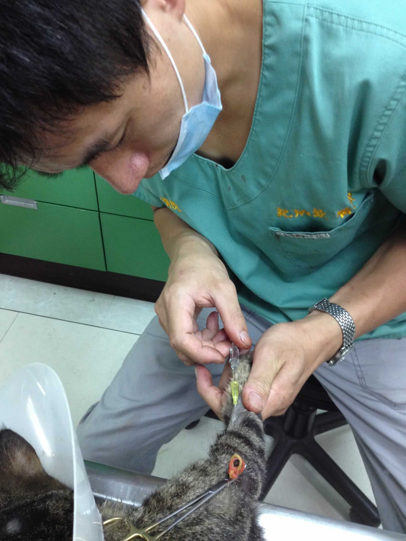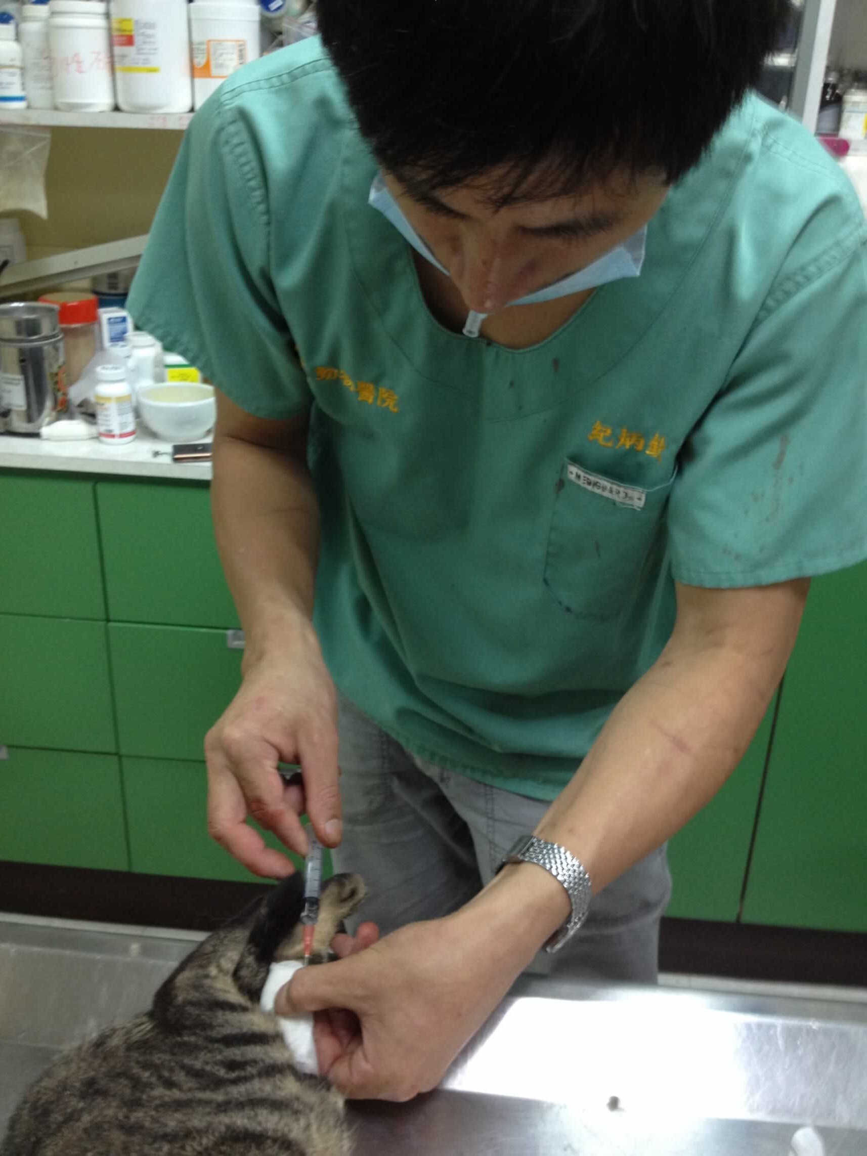 傷口的部分,醫生幫水星縫了一側。