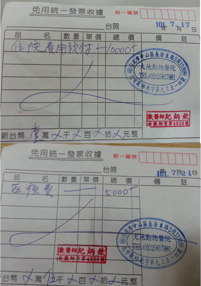 7/11-7/13 住院第一天~第三天 - 3000元 (因72小時為黃金恢復期)