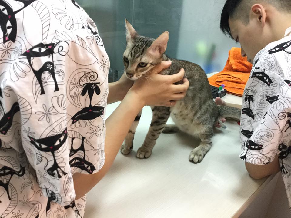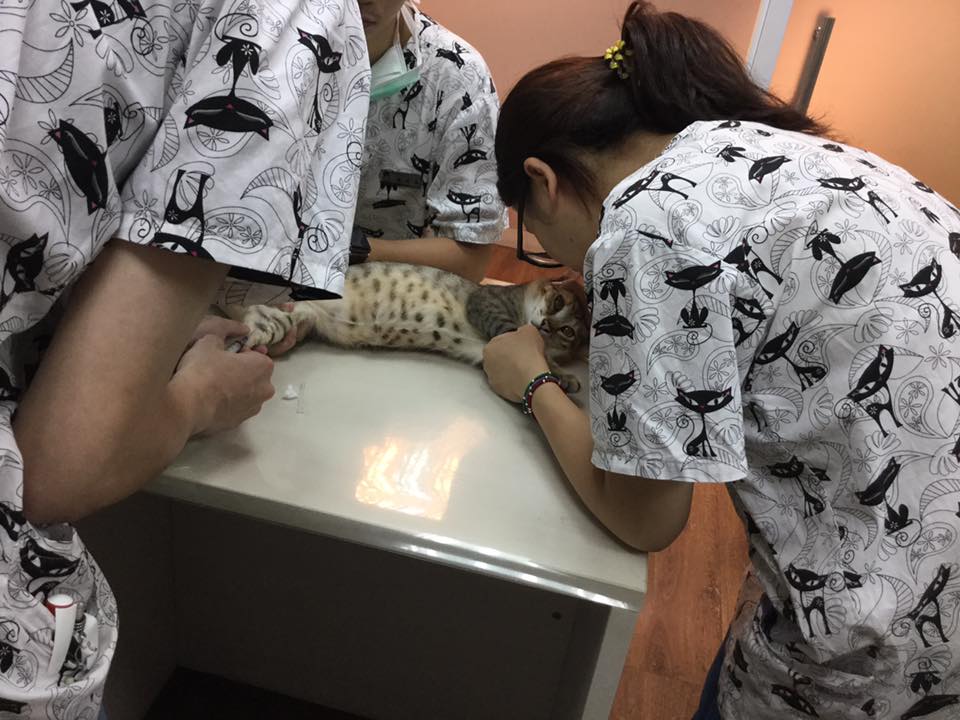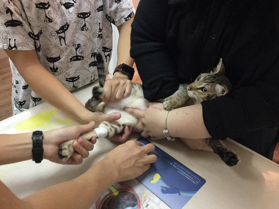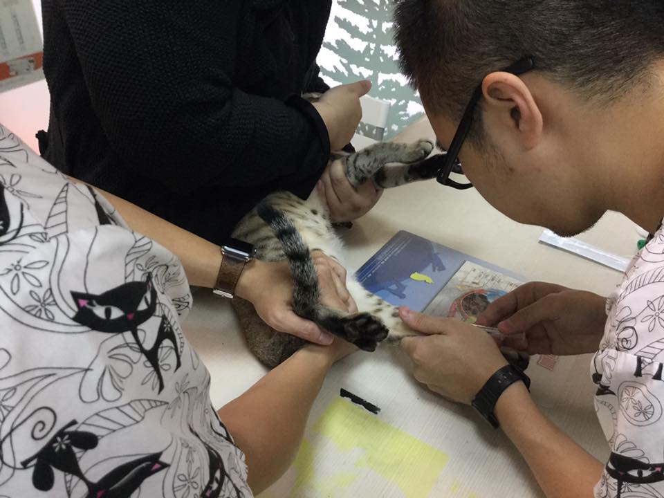 灰灰乖巧的在診療台上讓醫生摸摸檢查,