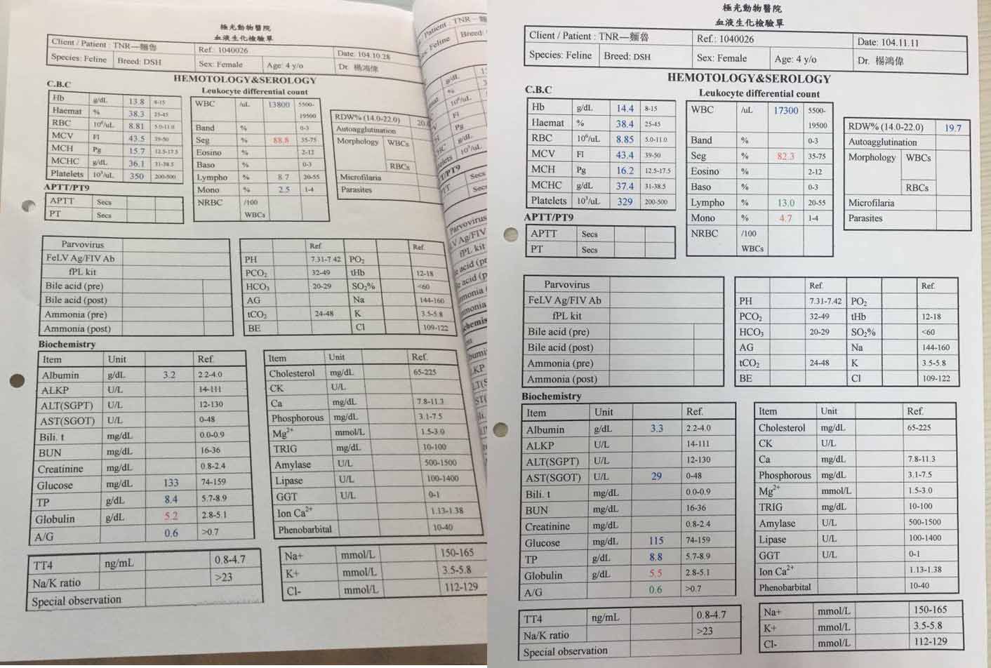 驗血結果,白血球已降到正常值,發炎指數亦有下降!