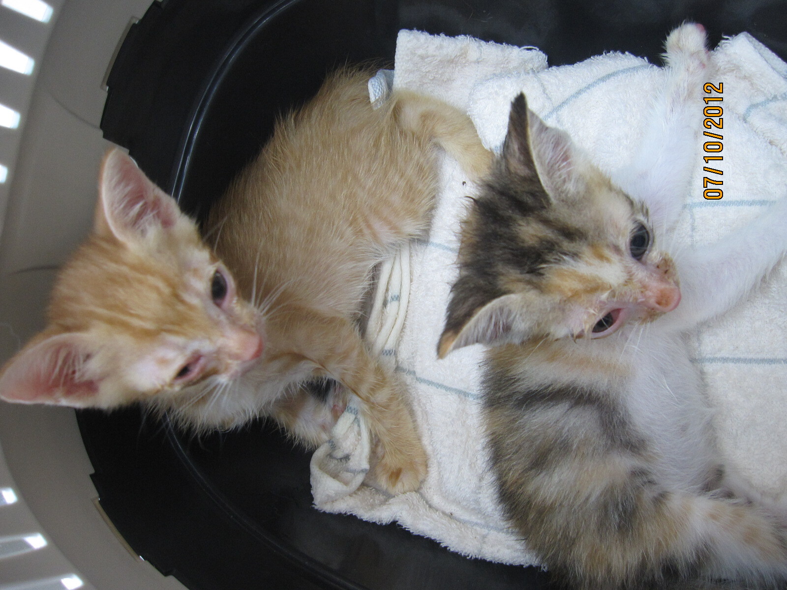 有二隻小貓前腳是畸形的,,前二腳是粘在一起是蹼狀,腳指頭没有分開,因還小,還不能判斷會不會影響以後的行走