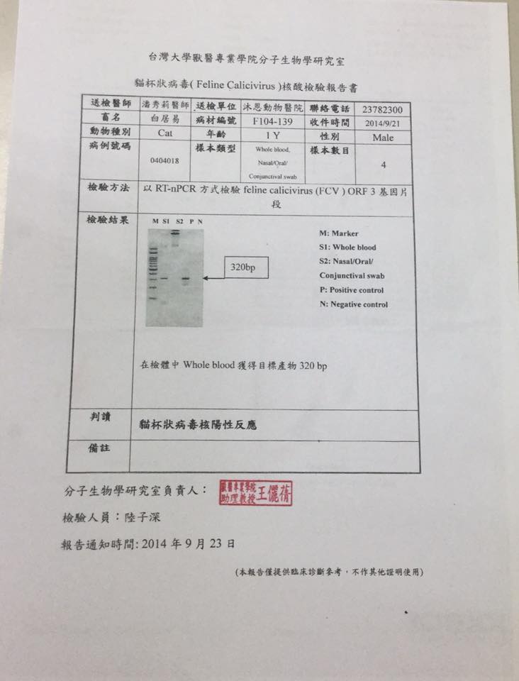 9/17回診,主要抽血檢驗腎功能及做卡里西病毒檢測的採樣,