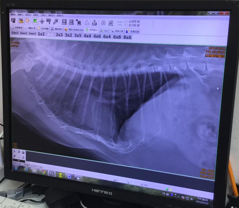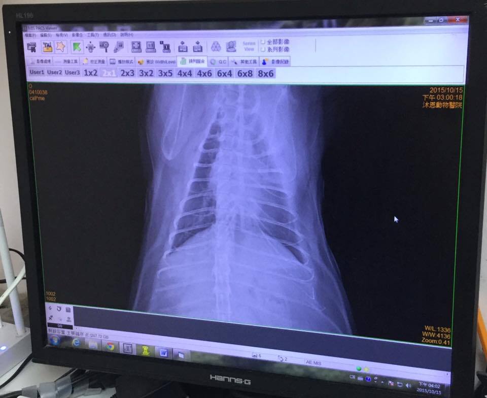 X光影像可見肺部內支氣管的部分呈現白濁,