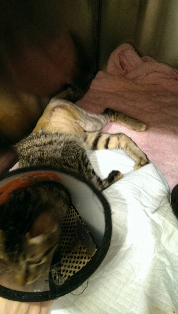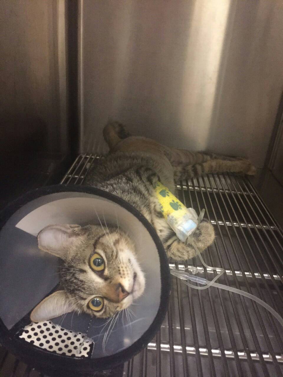主題: 深夜車禍骨折的小虎班貓 申請者姓名: 陳藝方 花色: 申請日期: 2015-12-14 23:00:36 申請者部落格: 申請者臉書網址: https://www.facebook.com/profile.php?id=100000133694632 所在縣市/合作醫院: 高雄市/小新動物醫院 治療費用: 28000元 需求人數: 29人 已結案 (2023-01-18 23:38:15) 報名人員: 李奇哥(已付款)、nio(已付款)、柑柑麻(已付款)、Chiung Wu(已付款)、老湯 x2(已付款)、潘逸群(已付款)、明益聯合 x2(已付款)、蘇菲(已付款)、王撐撐(已付款)、Elie Huang(已付款)、lavinia x2(已付款)、Eric Chien(已付款)、Mia(已付款)、Roxy Hu、Molly x2(已付款)、姜(已付款)、周小雨(已付款)、Lin HanHan(已付款)、菲比(已付款)、Bella Chen(已付款)、黃秀蘭(已付款)、Ivy(已付款)、vivian(已付款)、謝明壯(已付款)、Yolanda Liu(已付款)、Sue Chang(已付款)、tokui(已付款)、 候補人員: 動物病情說明: 11/16深夜發現位於高雄市鳥松區華美里學堂路106巷5號的路邊,小虎斑浪貓倒置路旁無法動彈,小貓呼吸微弱,送小新動物醫院檢查照射X光發現小貓因重力撞及碾過造成嚴重3肢骨折腹腔破裂腸壁脫離,後兩肢嚴重腸薦骨、骨股頸骨折3節,醫院第一時間先維持生命症狀穩定給與止血跟輸代用血漿 動物近況說明: 目前的狀況是後肢已經可以站立,可以站著排便以及排尿,食慾正常,排便較吃力,骨盆腔仍狹窄,所以需要每日服用軟便劑及礦物油潤滑腸道,等骨盆腔完全穩固後可考慮將恥骨聯合處截斷,使骨盆腔開口擴大,應該可以舒緩便秘的問題