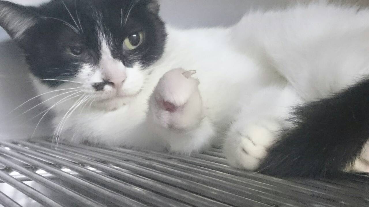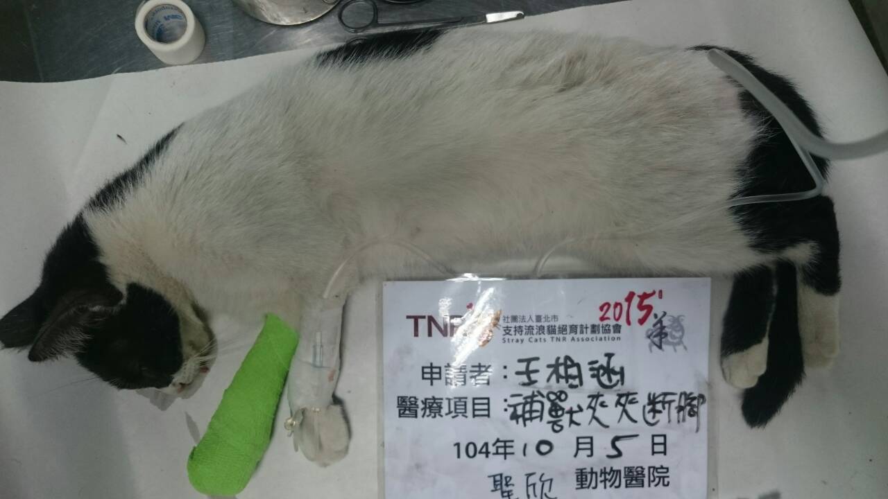 趕緊送去合作的醫院,醫生下午就為他進行手術,前腳進行截肢,身體脫水的很嚴重點滴差點打不進去,醫生說目前血壓過低觀察幾天在決定要不要進行驗血,如果接下來幾天狀況不好再來進行驗血。動物近況說明: 10/11探視貓咪