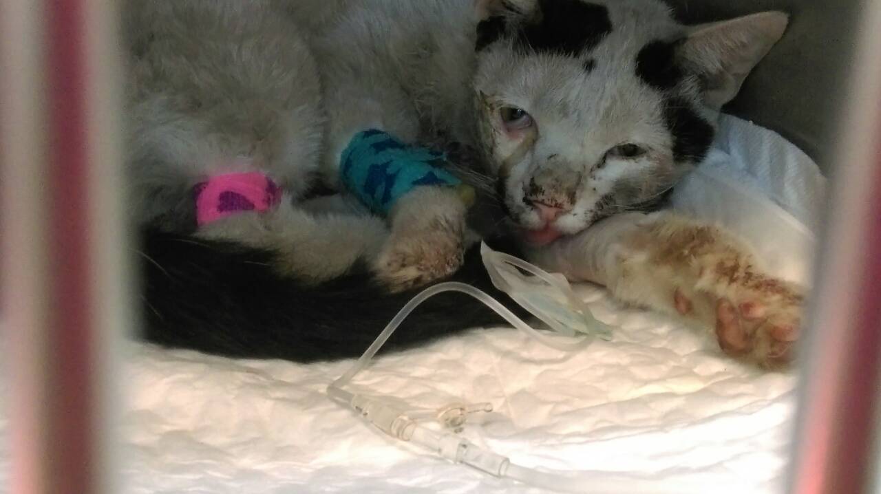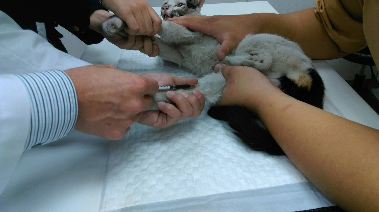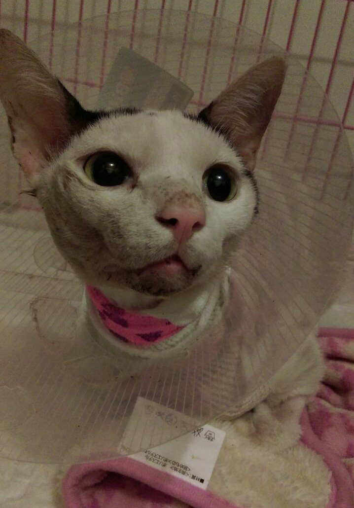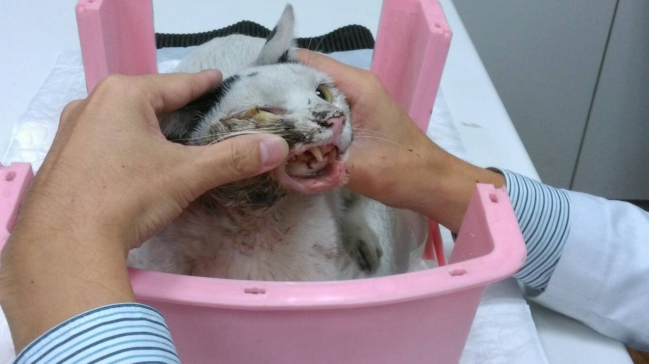 在五信陳醫生的照顧下,貓咪的生命跡象穩定,右臉傷口有止住血(紅血球數量有恢復)、外露的傷口也沒有感染,而血糖偏高是因為受傷的關係,傷口不要惡化就會下降到正常。