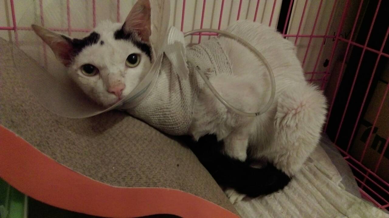 醫生表示中分恢復的很好,已經可以出院不用回診了。動物近況說明: 目前中分已經出院並由同事友人認養,