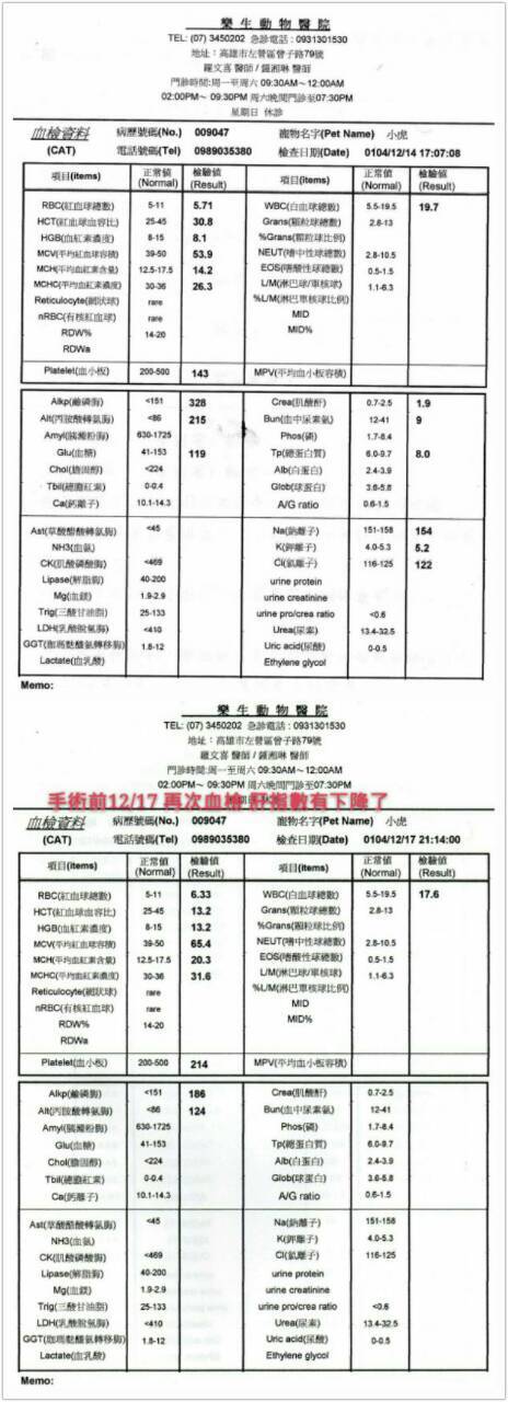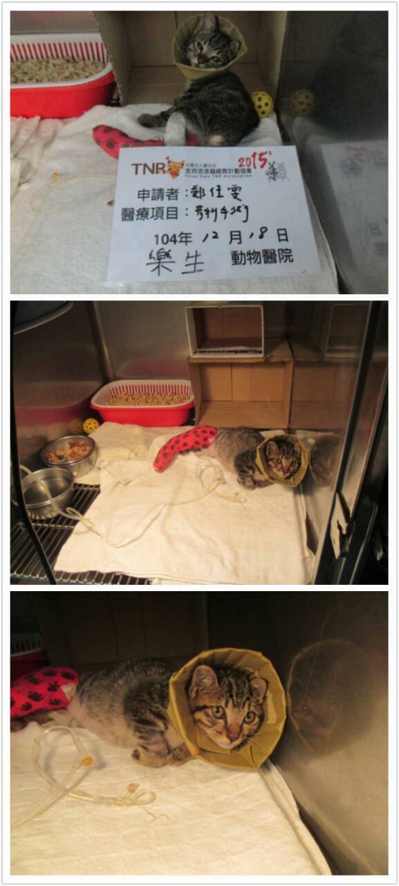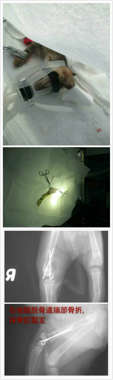 經過觀察 醫院在12/18幫忙小貓手術, 術前醫生有再次做血檢 肝指數有下降才決定排手術。手術目的是將小貓右後腿股骨遠端部骨折, 採骨釘固定^^