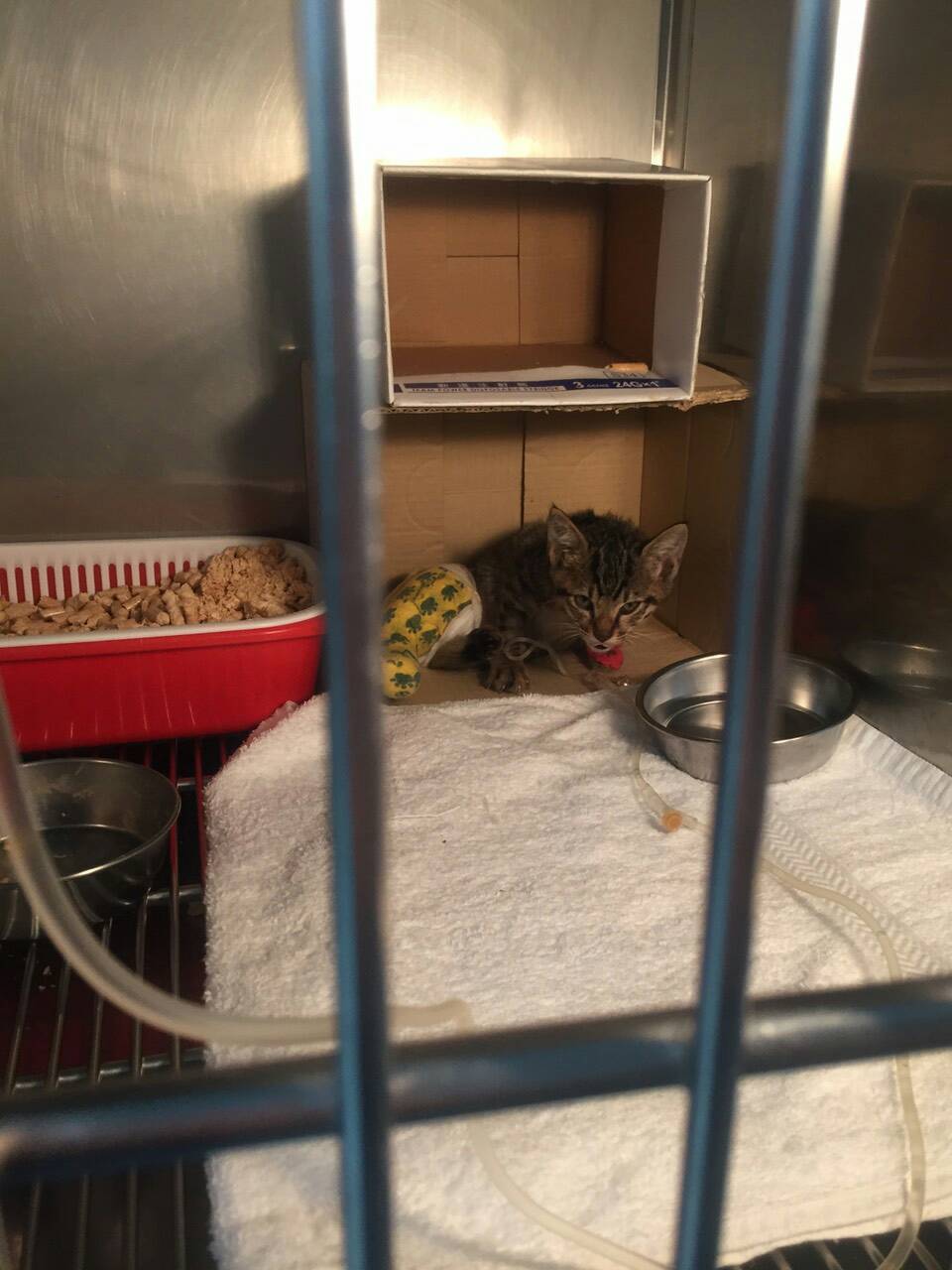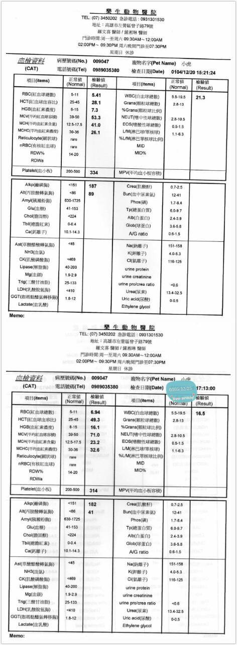 在網路上搜尋了找到這間協會合作醫院有人說手術不錯,我們趕緊載去拜託醫生,醫生幫貓咪做了血檢和照x光,診斷小貓右後腳股骨遠端骨折, 還有左後腳股骨骨裂, 驗血發現白血球及肝指數多偏高有發炎及肝損傷的現象, 醫生說貓咪還有輕微脫水, 初步已先給藥及輸液治療, 待肝指數下降後再排手術, 希望一切順利,貓咪能夠康復