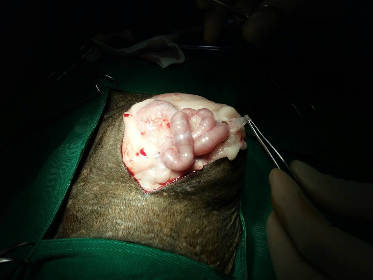 檢查結果確定是腹壁破裂造成的赫尼亞