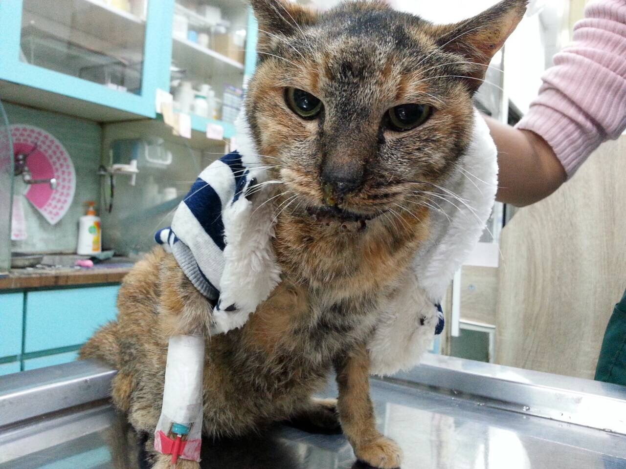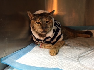 柚香雖然是浪貓,但非常的乖巧溫馴,求生意志高,由於腎臟貓咪平時照護的費用不低,吃處方飼料,打造血針、皮下注射,也有定期驗血,住院費用更高因此再度申請醫助,等狀況穩定會先出院自行居家照護。動物近況說明: 2016/1/1
