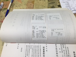 醫生血檢數值不太樂觀,醫生說打了三天點滴,尿毒和腎臟指數還是沒降下來,反而升高,不是好現象,又因為紅血球驟降,所以要開始打造血針先提高紅血球指數,才能讓尿毒指數降低。