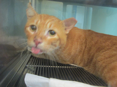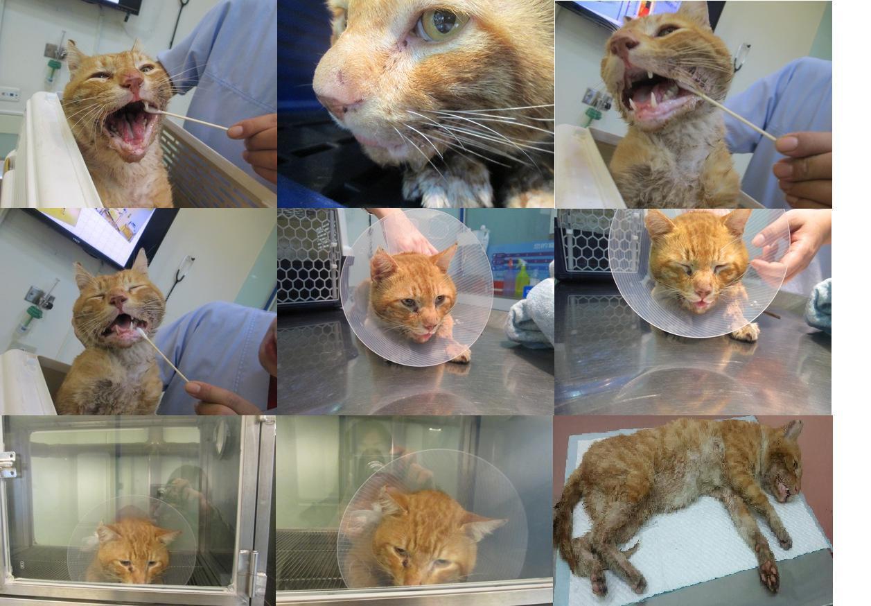 1/5 橘橘住院有點緊張,有進食,醫療方面是投藥(類固醇)+點滴(補充營養和水分),口水較少了,精神也不錯。