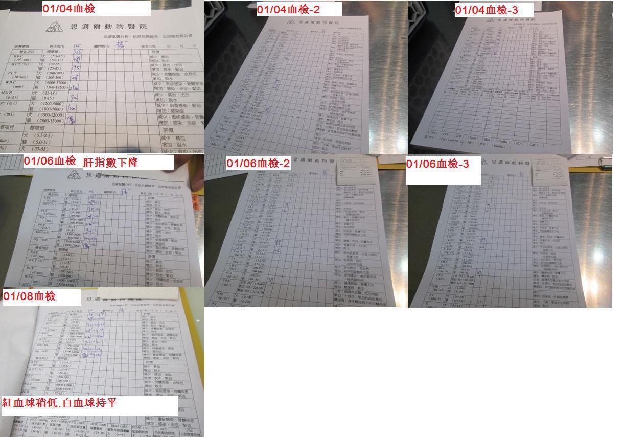 1/6 橘橘血檢,肝指數下降,貧血沒那麼嚴重了,醫生表示也許手術中不需要輸血,但如有配對成功,會先做保留。醫生表示,明天的手術,橘橘的身體狀況應該沒問題。進食、精神都不錯,會對著人撒嬌。