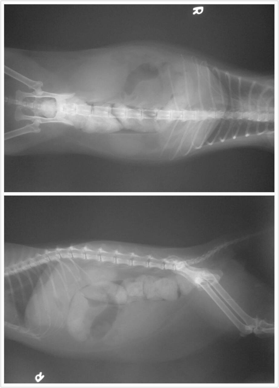 初步醫生先給予點滴及藥物治療(肝藥,止痛劑及抗生素,還有止血劑),X光片下確定膀胱有漲大及積糞,所以先給予擠尿和浣腸,以減緩不適