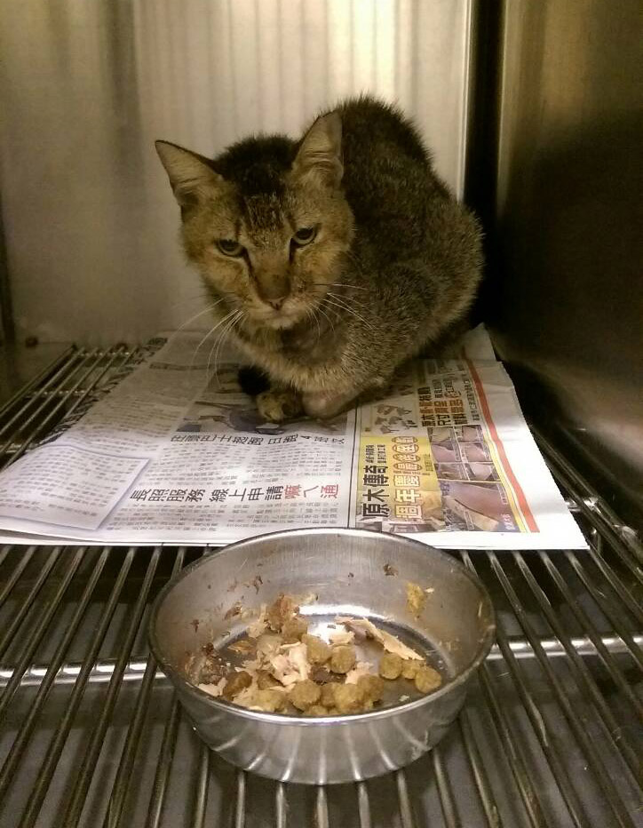 1/10很開心阿飛有開始吃了一點點罐頭,也有排尿了,精神有比較好一點點點了。動物近況說明: 1/13(血檢),阿飛,腎指數有回到正常質,肝有降,但是還沒到正常質,