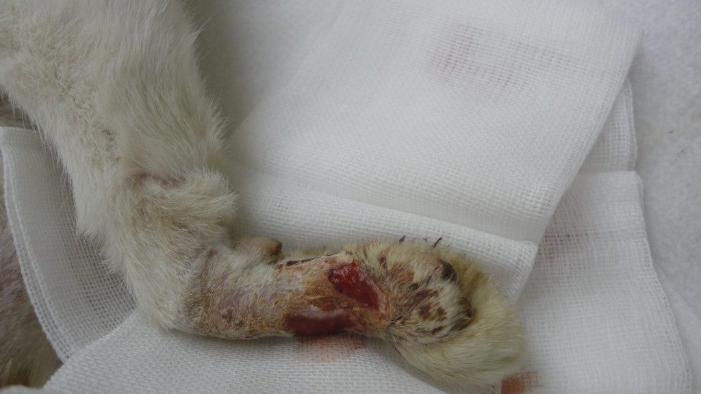 左前腳嚴重化膿,右前腳則是嚴重的血管炎,
