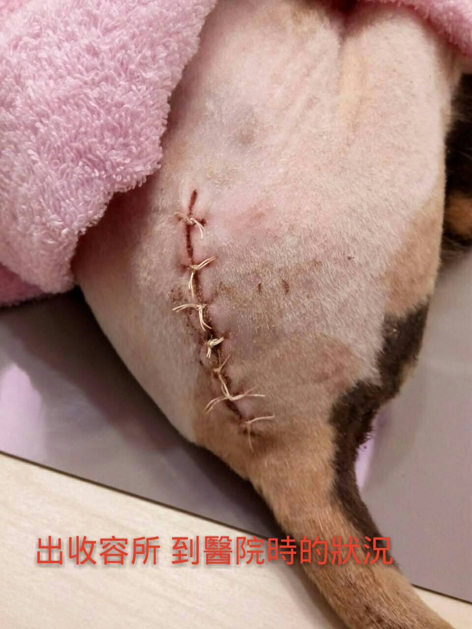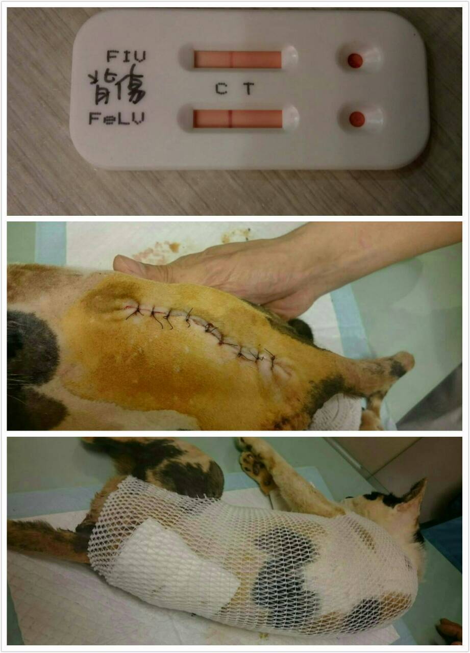清創手術完, 上留置針打靜脈的抗生素,醫生持續治療,為了讓貓咪進一步受更多治療,目前貓咪轉院繼續治療,謝謝大家幫助這癱瘓背傷的可憐貓咪,感恩^^