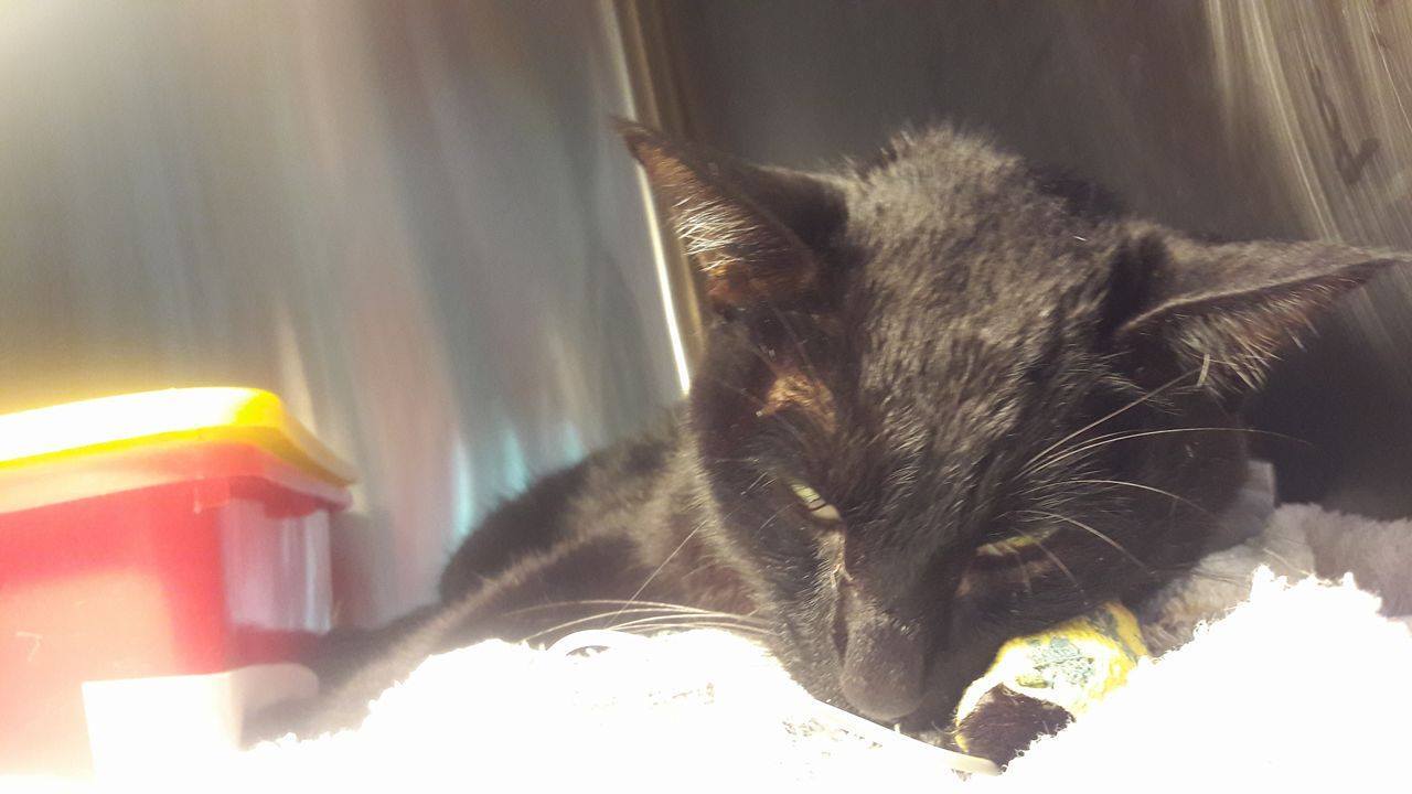 因為ㄚ黑一直撐著也都不吃~下午醫生會在幫ㄚ黑裝置鼻胃管好餵食~