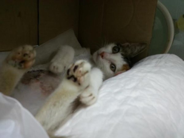 於住院7天後,先由我帶回中途,待傷口完全癒合後,就可安排送養事宜!這是隻非常幸運的小貓,希望他術後能迎向陽光,有個美好的一生,由三花之音,取名為SunFlower!愛稱:小葵!
