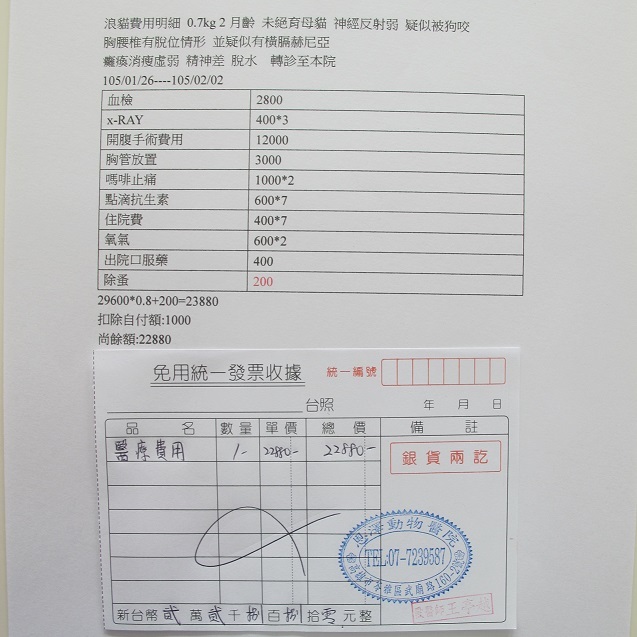 只待協會通過此次審核共同負擔小貓之醫療費。