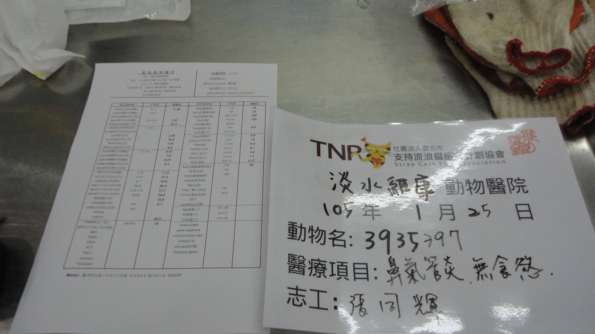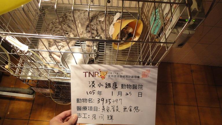 主題: 收容所救出,嚴重鼻氣管炎的浪貓 申請者姓名: 臺北市支持流浪貓絕育計劃協會 花色: 申請日期: 2016-02-06 14:31:34 申請者部落格: 申請者臉書網址: 所在縣市/合作醫院: 新北市/維康動物醫院 治療費用: 5040元 需求人數: 12人 已結案 (2024-06-01 13:40:45) 報名人員: Nina Chiu(已付款)、薇薇安、薇薇安 x2(已付款)、Tetsu x2(已付款)、Judy Chuang(已付款)、Ed Tsai x5(已付款)、Sharon Wang(已付款)、 候補人員: 動物病情說明: 1月25日