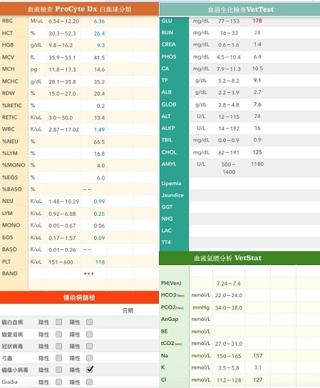 主題: 貓瘟小浪浪-敗血併發心肌炎(已過世) 申請者姓名: 顏莉菲 花色: 申請日期: 2016-02-13 10:29:46 申請者部落格: 申請者臉書網址: https://www.facebook.com/profile.php?id=100000318280723 所在縣市/合作醫院: 高雄市/弘恩動物醫院 治療費用: 5500元 需求人數: 13人 已結案 (2024-06-01 13:40:40) 報名人員: lazymimicat(已付款)、ERic YU(已付款)、Ellen Cheng(已付款)、Tzu-Wen Kao(已付款)、Jimmy(已付款)、julie lee x2(已付款)、獅子王(已付款)、Alice Wei x2(已付款)、吳小喵 x2(已付款)、Piyin Pai(已付款)、 候補人員: 動物病情說明: 小浪浪是我長期餵養街貓的浪浪所生的孩子,