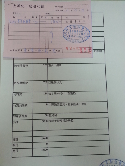 主題: 黑黑鼻腔採樣手術+細菌培養檢驗費 申請者姓名: 臺北市支持流浪貓絕育計劃協會 花色: 申請日期: 2012-07-28 01:03:46 申請者部落格: 申請者臉書網址: 所在縣市/合作醫院: 台北市/其他院所醫助專案(醫院請先MAIL溝通) 治療費用: 15000元 需求人數: 30人 已結案 (2012-12-01 23:52:37) 報名人員: Slowsnow Hsu(已付款)、Vavina Kim(已付款)、吳大俠(已付款)、吳大俠(已付款)、Kay Chang(已付款)、陳旺旺(已付款)、Cynthia、Anny (已付款)、BigMao(已付款)、余雪琪(已付款)、大白公主(已付款)、孫露露(已付款)、Ya-Hsien Yang(已付款)、rewich77(已付款)、Necica Su(已付款)、Vivian(已付款)、bibaushi(已付款)、黃秋綾(已付款)、Ming Jeng、夏天(已付款)、喵喵(已付款)、謝佩芳(已付款)、小珍(已付款)、chiawei(已付款)、Anna Shen(已付款)、黃淑華(已付款)、Edwin(已付款)、龍豪(已付款)、沙粒小貓(已付款)、沙粒小貓(已付款)、RuRu Pan(已付款)、nicole chen(已付款)、 候補人員: 小舟、小舟、 動物病情說明: 我叫做黑黑,