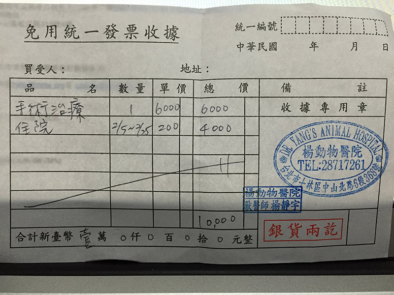 02/05-02/27於楊動物醫院住院。期間皆有去醫院探視。