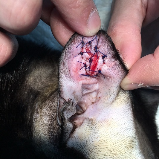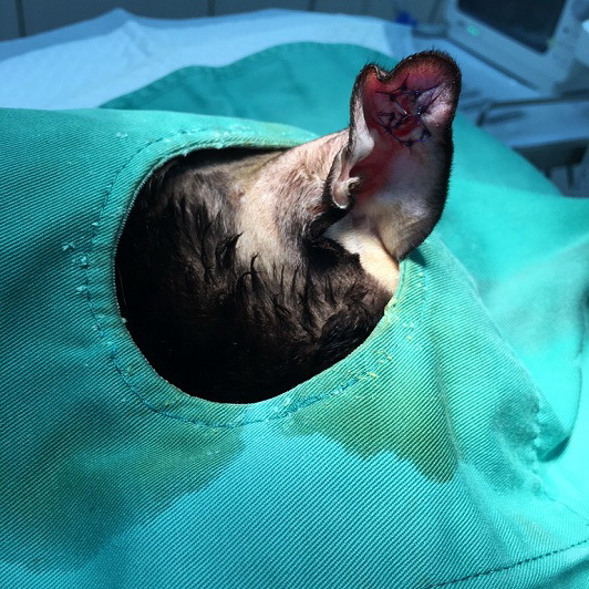 亮亮的耳朵在手術後,