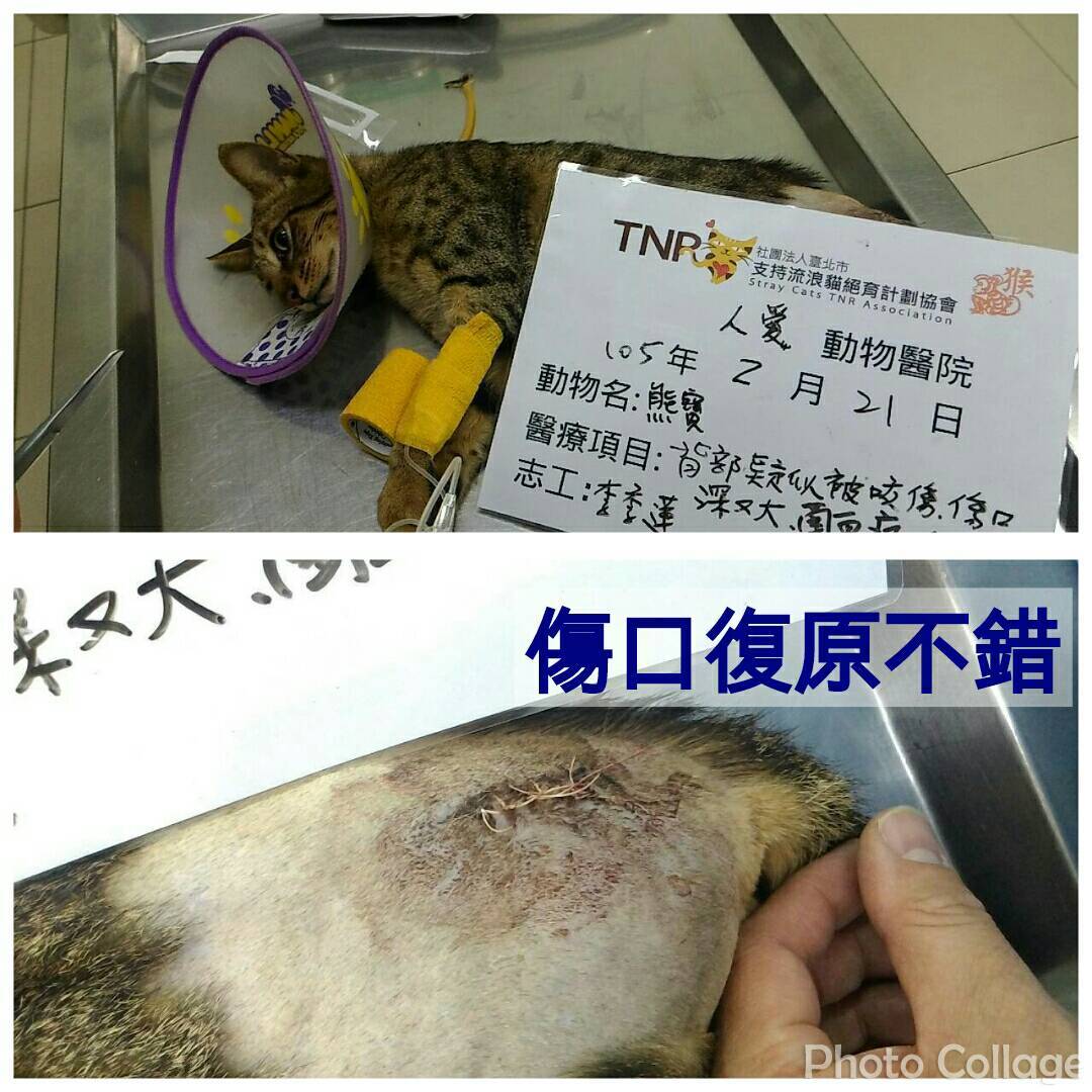 動物近況說明: 熊寶外傷痊癒也完成節育原放於餵養區
