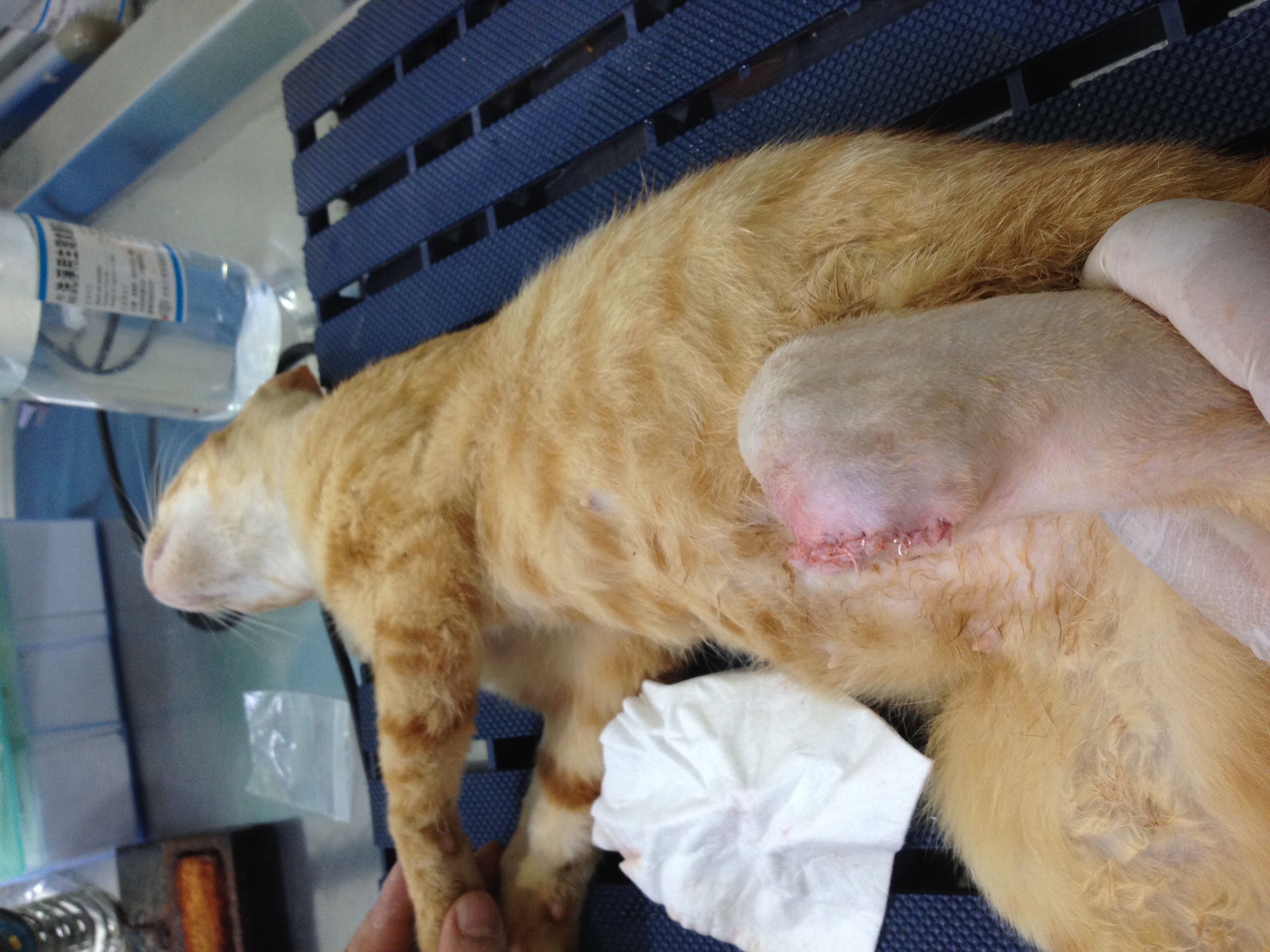 主題: 台東卑東捕獸夾受傷貓咪救援(已截肢) 申請者姓名: Jerry Wang 花色: 申請日期: 2012-07-30 00:26:44 申請者部落格: 申請者臉書網址: http://www.facebook.com/media/set/?set=a.2168035016370.57285.1711546788&type=1 所在縣市/合作醫院: 花蓮縣/建國動物診所 治療費用: 4850元 需求人數: 6人 已結案 (2012-12-02 00:38:44) 報名人員: Lo Chun Hung(已付款)、Karen Kuo(已付款)、Jason Chu(已付款)、佩(已付款)、佩(已付款)、佩(已付款)、 候補人員: 小舟、小舟、 動物病情說明: 6/26熱心網友發現台東縣卑南鄉山區遭捕獸夾傷害貓咪(傷口組織已見白骨發臭),經網友上傳至TNR版求救後,先向協會救援組組長敏大哥表達前往救援意願獲得同意下,由台北-花蓮-台東三地志工分工救援合作,6/27晚間於山區使用誘捕籠救援成功,翌日白天由台東返回花蓮市TNR協會合作動物醫院醫療救助。