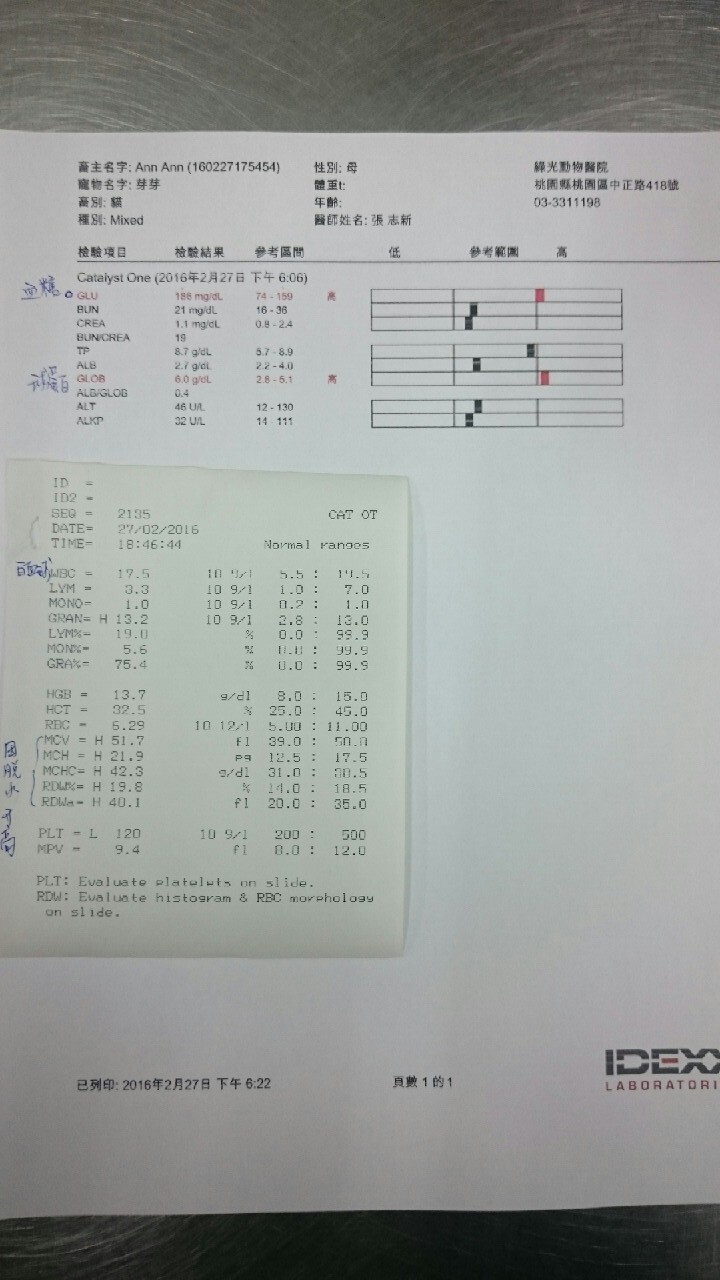 Ps.醫生說待第二次血檢報告 看各方面指數是否正常 再評估是否適合結紮 因住院治療過程天數長 若能結紮就一併絕育 可以術後在院休養