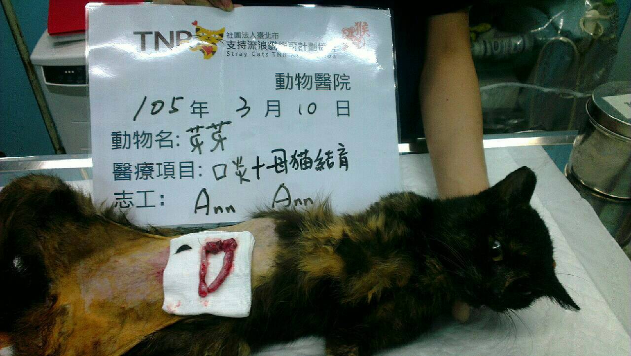 3/10下班到院看芽芽 醫生說 幫芽芽結育了 麻醉中 有看芽芽的口腔喉頭 紅腫潰爛有好一些 再過幾天可出院了